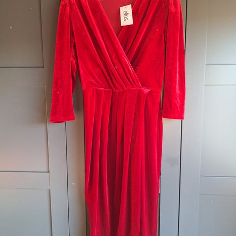 Ellos kjole til spesiell anledning i størrelse 50/52. Kjolen er rød og laget av polyester. Designet for kvinner.