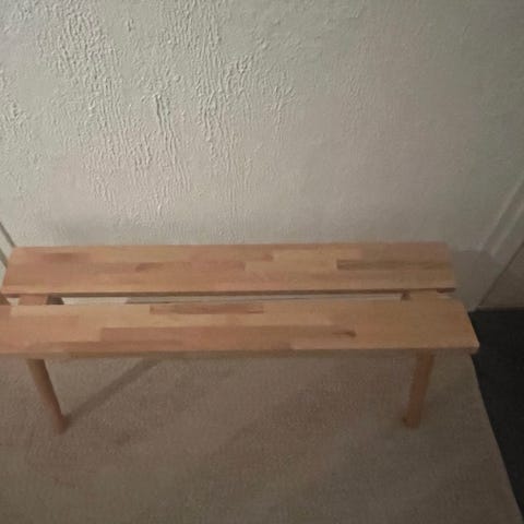 Selger to solide hjørnebord I lys eik. Pene bord med minimal slitasje. Selges til 400 kr pr. stk.