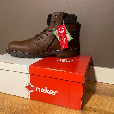 ECCO støvler i størrelse 41, laget av brunt skinn. Støvlene har snøring og solid gummisåle som gir godt grep. Designet for komfort og holdbarhet.