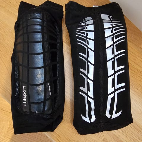 Leggebeskyttere egnet til fotball. Fremdeles i pakken, kjøpt på intersport.
