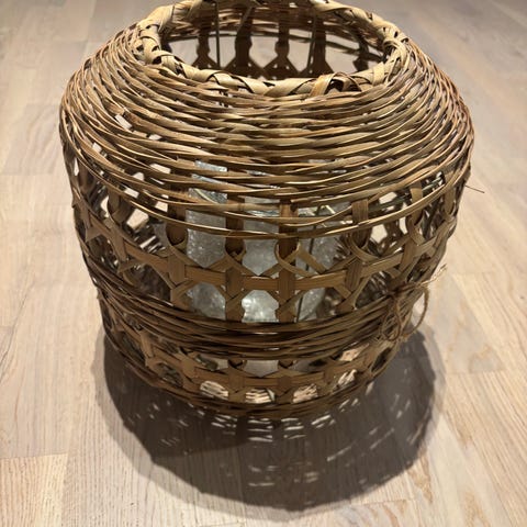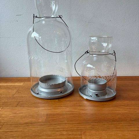 Stor lyslykt i mørkt glass.