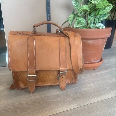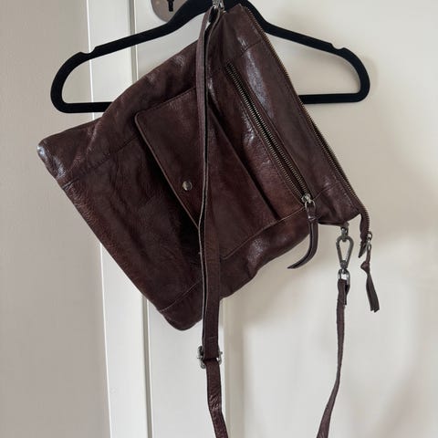 Jeg selger. Svart, ingen skader som ny brukt 2-3 ganger, har mange lommer, 2 glidelåslom . Veldig prsktis hverdagsveske:) 400 kr