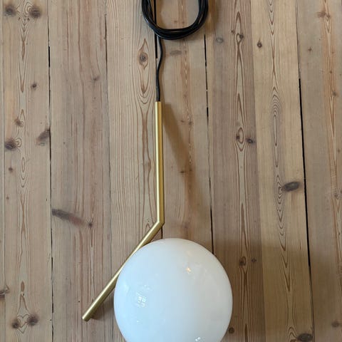 Brukt AIM Flos lampe. Ledning noe kuttet og er nå ca.6,42 cm. Noe sorte merker på ledningen, se bilde.
