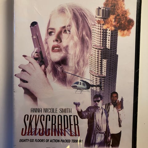 DVD-film Skyscraper med Dwayne Johnson. Aldersgrense 15 år. Inneholder action og thriller-elementer. Språk og undertekster ikke spesifisert.
