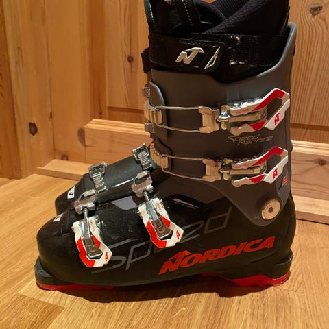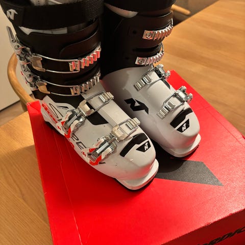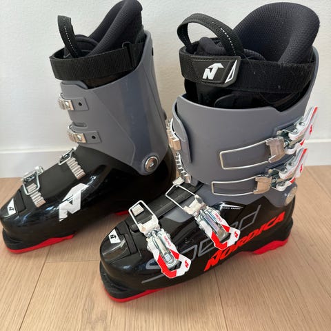 Nordica skistøvler i svart og grå med røde detaljer. Utstyrt med fire spennelåser for justering og god passform. Mondo 25,5