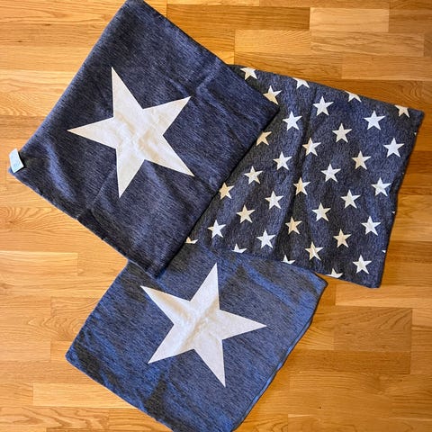 3. Stk. Grønne Linnea puter fra Rusta Home. Ikke brukt. Lappen fortsatt på.