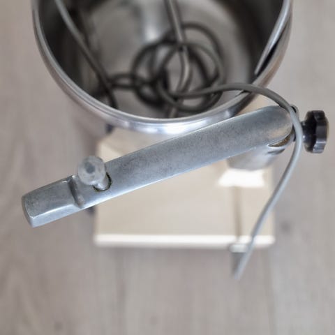 Electrolux Assistent kjøkkenmaskin med to rustfrie stålboller i ulike størrelser. Inkluderer visp, deigkrok og flat miksespade. Håndtak på den største bollen har falt av, er derfor et lite merke/hull i bollen. Ikke vært problematisk for mitt bruk. Noen bruksmerker på miksespade.