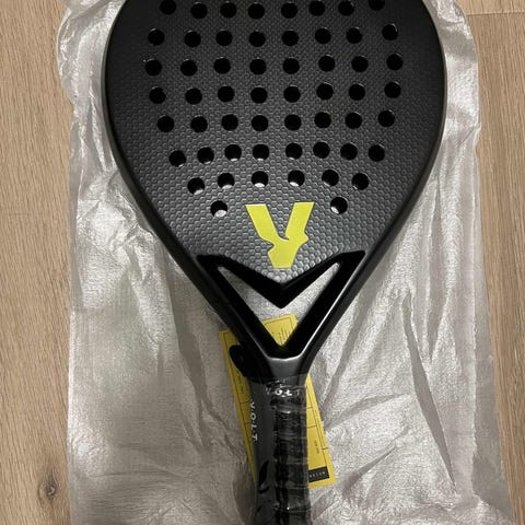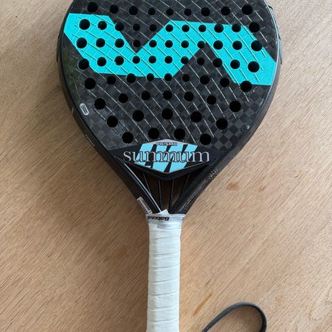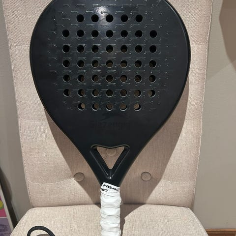 Selger en racket som er brukt noen måneder, men har ingen synlige skader. Den har beskytter på toppen av racketen.
