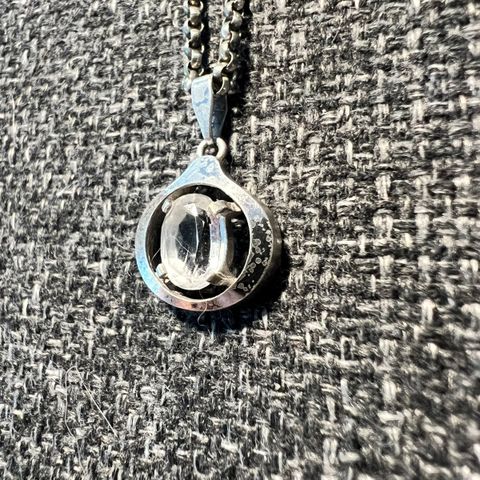 Et flott halskjede med perle og sølv detaljer selges. Jeg er usikker på om perlen er ekte eller er det imitasjon. Anhenget er veldig pent.