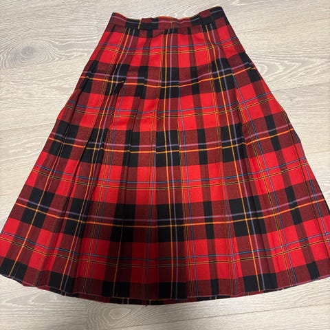 Selger et veldig fint rødrutete skjørt til 200 kr. Det er lite i størrelsen, så selv om det står medium er det mer som small. Lengden er til mellom knærne og anklene. Det er helt nytt og ubrukt.