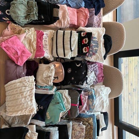 Selger en stor klespakke med pent brukte klær til jente str 122/128 og 134/140. Totalt 55 plagg.