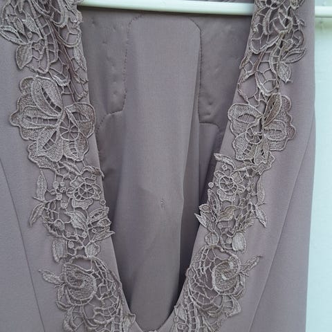 Svart paljettkjole/ festkjole i størrelse XS-S (med god stretch). Den har kort erme og en dyp utringning foran, samt splitt midt bak. Brukt kun én gang!