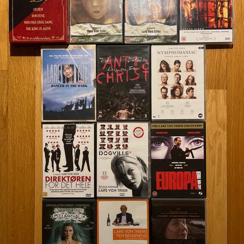 Lars von Trier Europa Trilogy DVD, 4-disc Hypnotic Edition. Inneholder filmene Element of Crime, Epidemic og Europa. DVD-samling med spesifikasjoner for visning av trilogien i en samlet utgave.