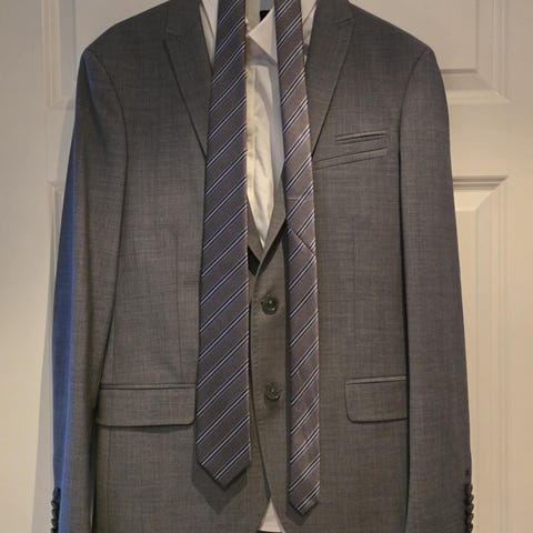Kun brukt et par ganger. Den har blitt akkurat litt for liten for samboeren, og han har kommet dit at det er lettere å kjøpe ny dress enn å få denne til å passe igjen…