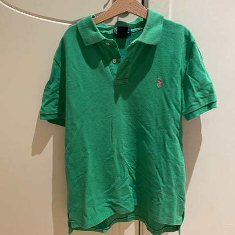 En vintage 70-talls polo skjorte, fra Kings Road. Veldig velholdt og laget av 50% polyester og 50% bomull. Lomme foran, på venstre side.