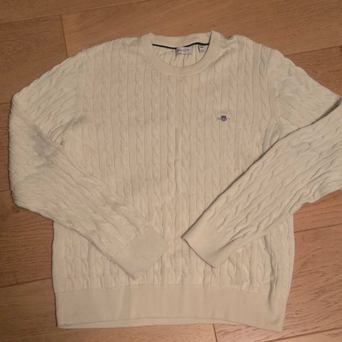 Grå gant genser, som ny ikke synlig brukt. Laget av 87% bomull og 13% polyester.