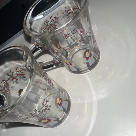 Selger 2 stk retro krus til Jul / glass til Jul / sovende nisser