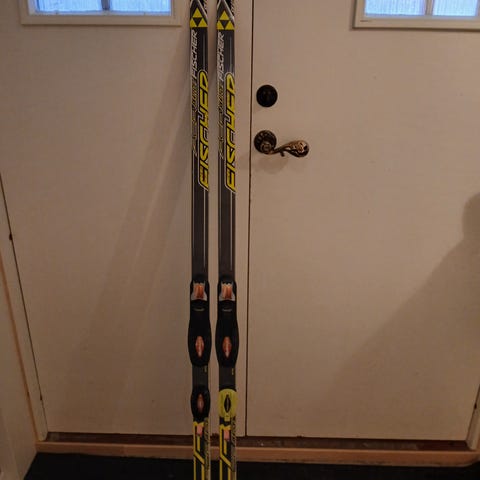 Fisher skate junior, 140 cm. Liten skade bak på skien og noen hakker bake binding.