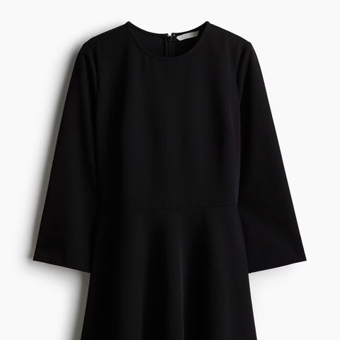 En kort, figurnær kjole i vevd boucléstoff. Kjolen har hjerteformet halsringning, lange ermer og en skjult silikonkant over skuldrene for bedre passform. Formende sømmer foran og markert midje gir en flatterende silhuett. Skjult glidelås med hekte bak. Helfôret for ekstra komfort.
