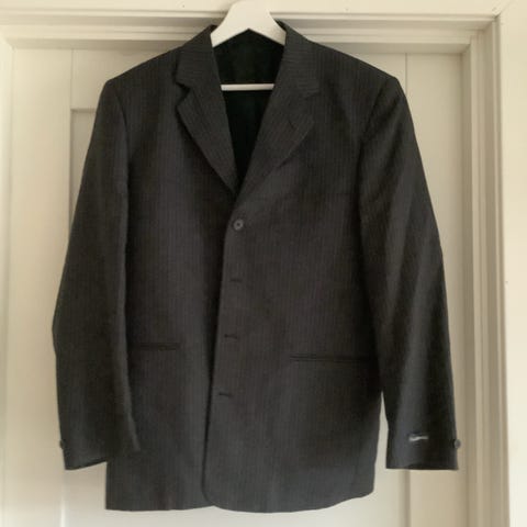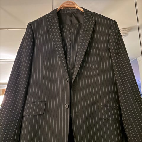 Stilren og klassisk dressjakke fra Batistini, i sort med smale lyse striper (pinstripe). Jakken har et tidløst snitt som passer perfekt til jobb, møter eller formelle anledninger.