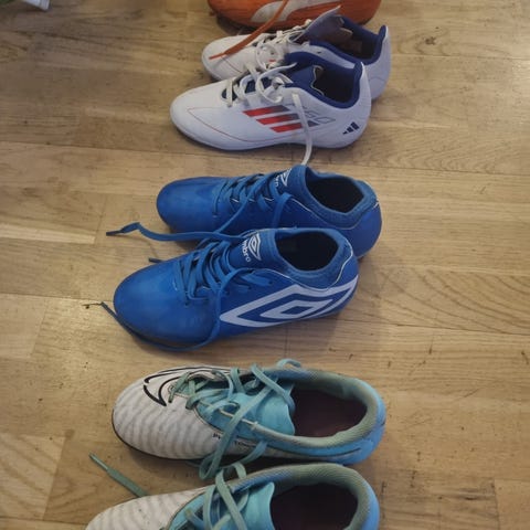 Selger div fotballsko. Noen med knotter og noen uten. Se bilde for tekst og størrelse
