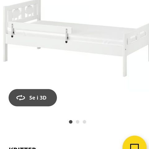 Minstemann har fått seg "stor gutt-seng", og vi selger derfor en Kritter juniorseng (160*70 cm), kjøpt ny av oss på Ikea. Sengen er demontert (derfor lånt bilde fra Ikea). Kan hentes her eller leveres i Fana/Bergensområdet etter avtale mot et lite tillegg i pris.