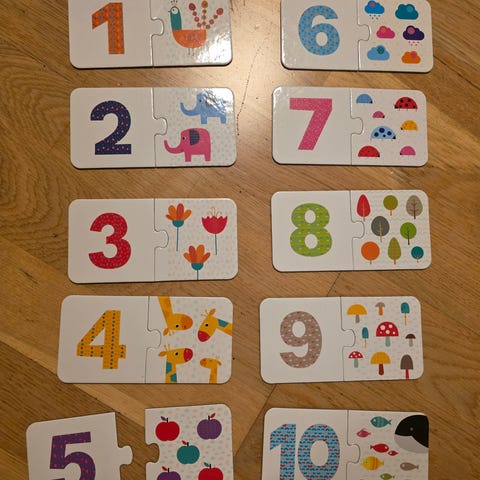 OYOY Numbers Puzzle med tallene 1 til 5. Puslespillet er designet for å lære barn tall og utvikle finmotoriske ferdigheter.