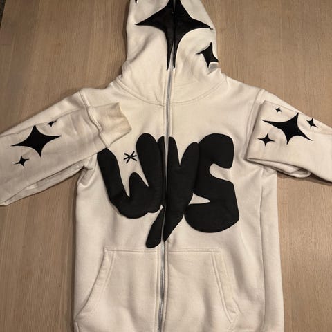 Zip jakke fra Watch Your Step. Et merke fra USA. Den er laget av 100% bomull. Den har puff print, silke hette, og stilige stjerne broderier på ermene.