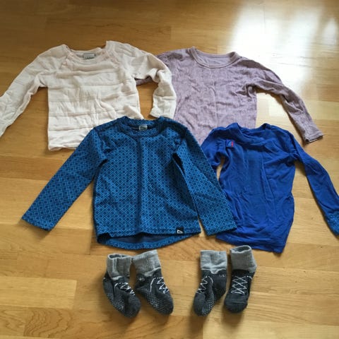 Klespakke med ulldress, fleecedress, balaclava i ull og bomull og ulltrøye og stillongs