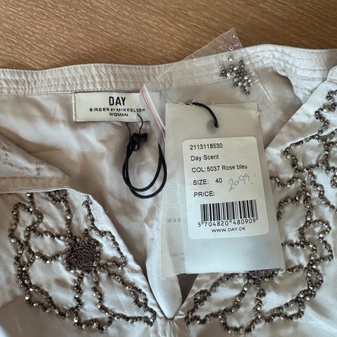 Vakker DAY Birger et Mikkelsen Lypette bluse i størrelse M, farge off white. Det er glidelås bak.
