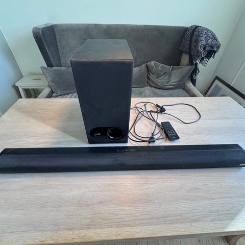 Polk Audio Magnifi Mini hjemmekinoanlegg selges. Så og si ubrukt. Nypris hos Power 5498 kr (13.12.25). Trådløs tilkobling til subwoofer. Wifi/Bluetooth/kabel tilkobling. Bra lyd ift. størrelse.