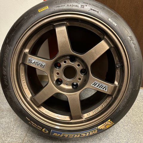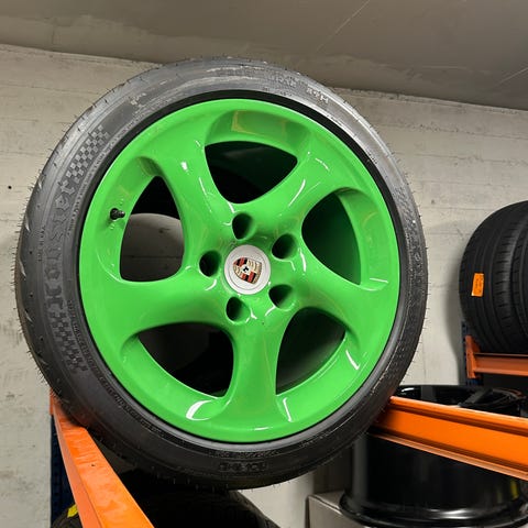 Meget pene felger som har stått på en 993, 4s, passer kun på bred bil . 3 delte skrudde med rustfri tønne . Michelin dekk med bra mønster.Selges bud over 25000