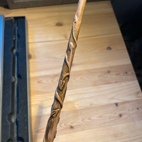 Harry Potter tryllestav i mørk PVC med strukturert håndtak og naturinspirert utseende.