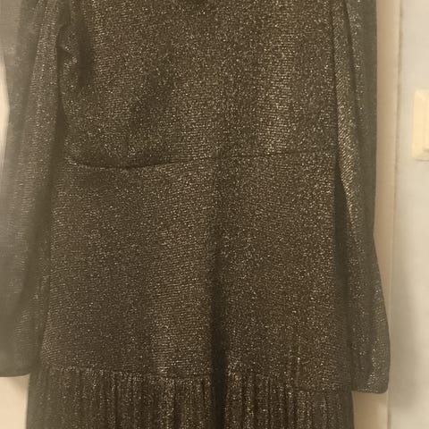 Flott kjole med glitter i ( litt vanskelig å få fram på bilde).Lite brukt, men strikken til knappene bak på kjolen er litt løs( se bilde)