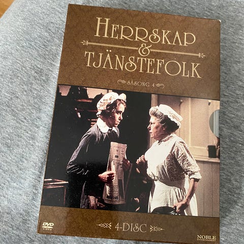 Herskap & Tjenere Sesong 1 DVD-serie. Inneholder hele første sesong av TV-serien med flere episoder. Serien er på DVD-format og leveres i uåpnet originalemballasje.