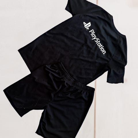 Dans barneklær i størrelse 146, farget lilla. Settet består av topp og shorts med dekorative detaljer, inkludert glitrende elementer og asymmetrisk design. Materialet er tøyelig og egnet for dans.