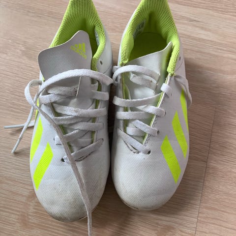 Pent brukte Adidas fotballsko i størrelse 29. Skoene har blitt brukt til og passer til både kunstgress og vanlig gress.