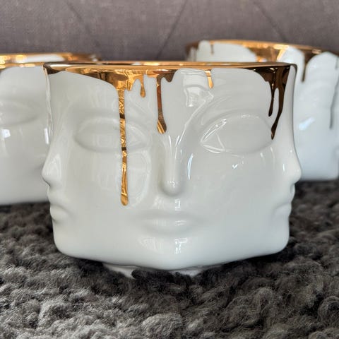 Spesielt stettfat i flerfarget glass.