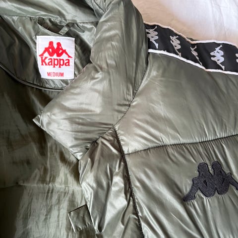Fila jakke i størrelse XL, svart farge. Ytterstoffet er 100% polyamid og resten er polyester som visst på lappen. Jakka har en liten slitasje på merkelappen bak i nakken der den har løsna, men ellers er jakka i god stand.