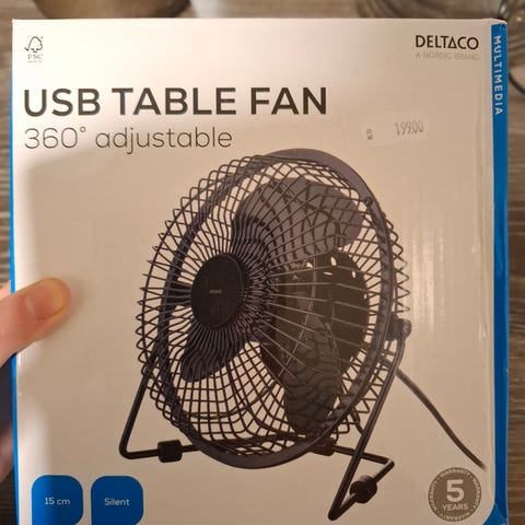 Perfekt som bordvifte til kontor, soverom eller stue. Gir god lufting og tar liten plass.