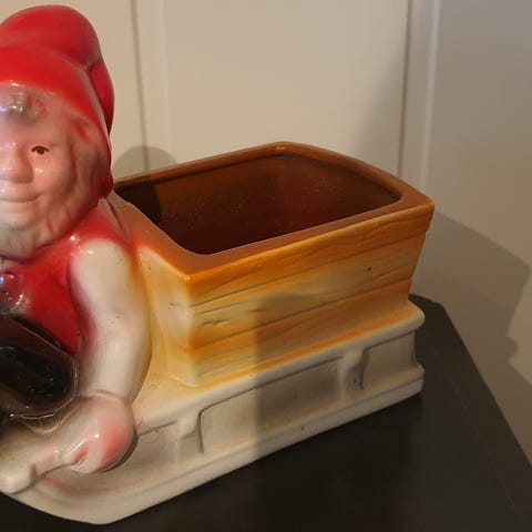 Kun et liteavslag i glasuren bak på skuldra, ellers noen få skraperpå fargen oppå tønna. Denne er blank og fin.