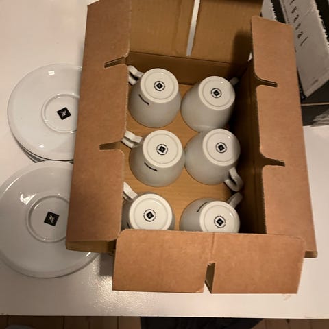 6 kaffekopper med tallerkener