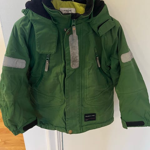 Skikkelig god vinterjakke fra Polarn og pyret. Nyvasket. Holder varmen veldig godt. Det sMme gjør vinterbuksen fra Reima. Begge i str 110 (4-5. år)
