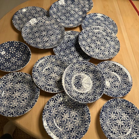 Queen's England Tallerken Blått mønster fra 1700 tallet