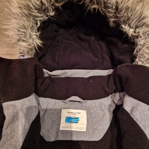 Var plutselig i en situasjon med to vinterjakker. Boblejakken er mørk blå, fra Polarn O. Pyret. Brukt to ganger (ikke på skolen), som ny.