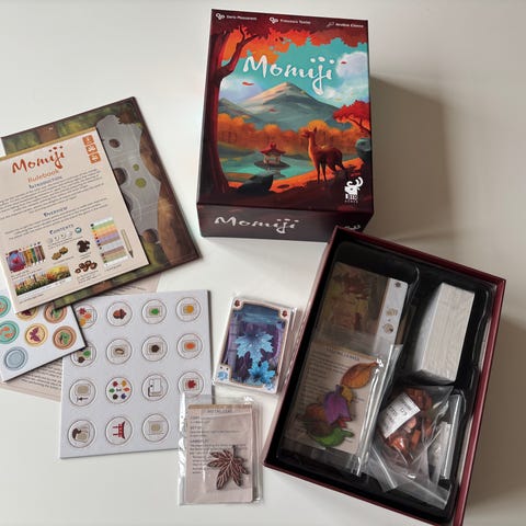 Jeg inkluderer alt fra All‑in Deluxe‑kickstarter‑tieret, bortsett fra “rose metal‑coin”, en mynt som kun er et samleobjekt. Dessverre kan jeg ikke finne den.