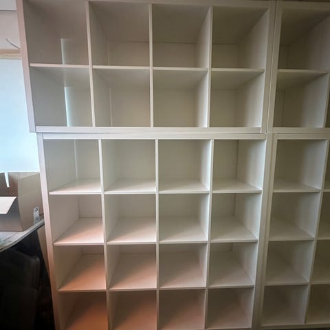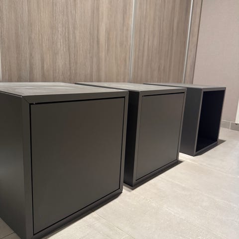 4 Stykk IKEA EKET hyller selges samlet. 3 stk mørkegrønn og 1 stk mørkegrå. Følger med opphengsskinner. Må hentes.
