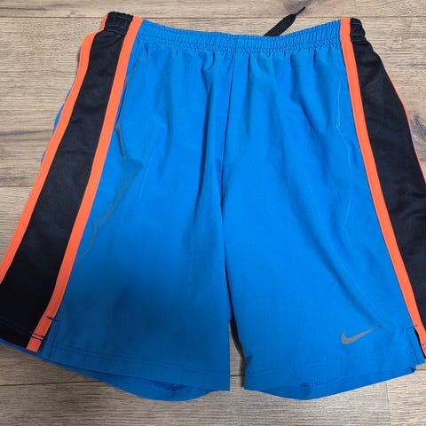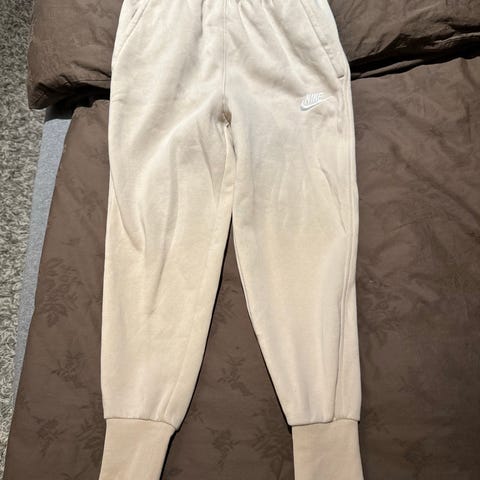 Nike joggebukser i størrelse 128-137 cm unisex modell. Laget av bomullsmateriale. Fargene er mørkeblå og grå, med Nike-logo på buksen.