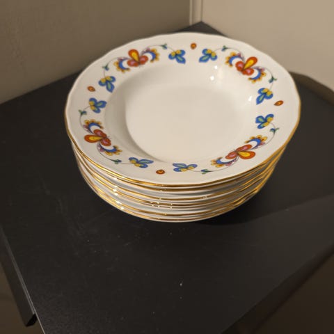 5 skåler fra Porsgrunn porselen bondemønster selges samlet kr 250.