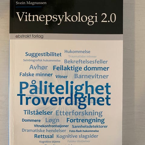Mer info her: https://www.akademika.no/medisin-helse-og-psykologi/psykologi/vitnepsykologi-20/9788279353881